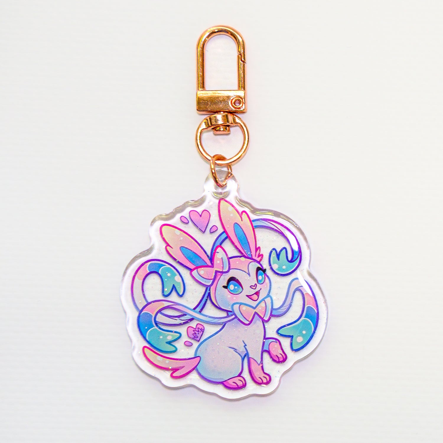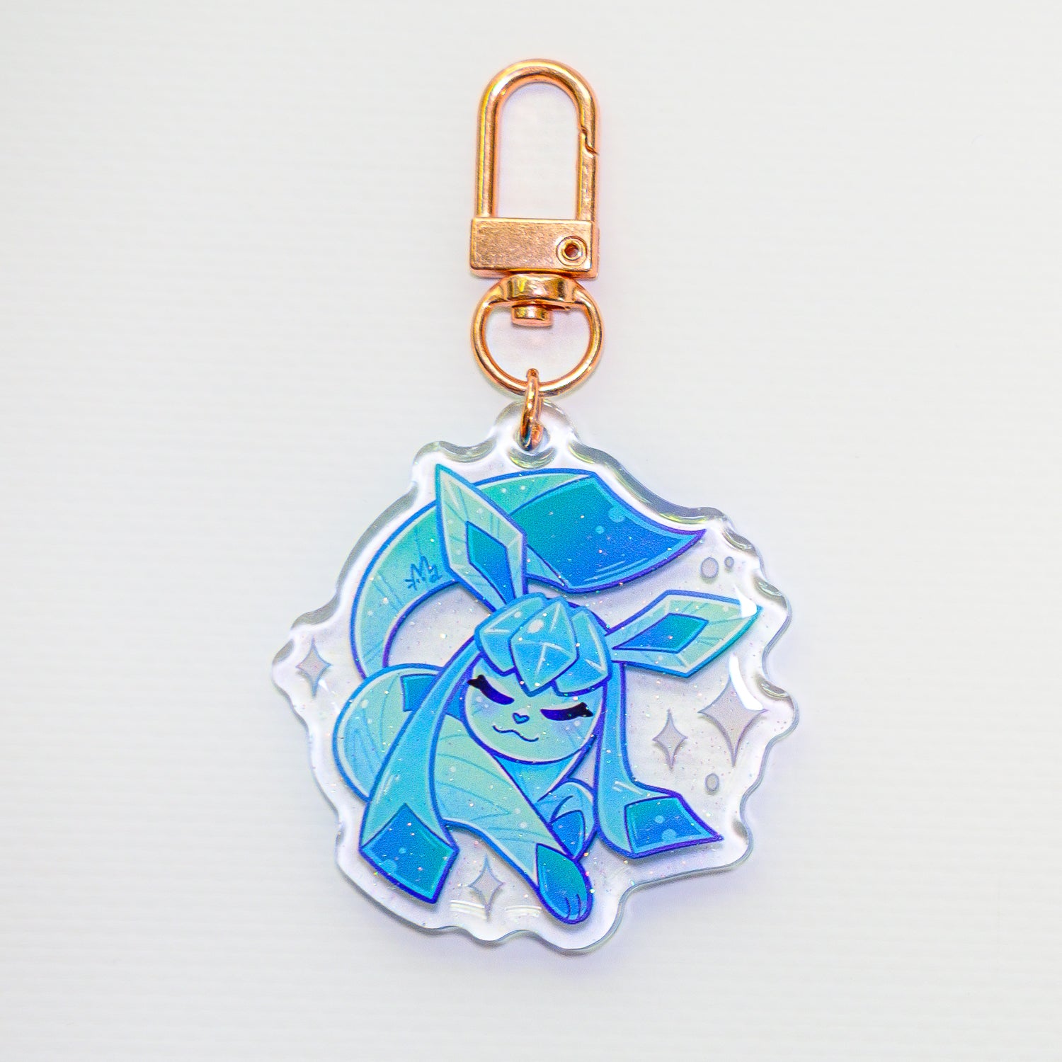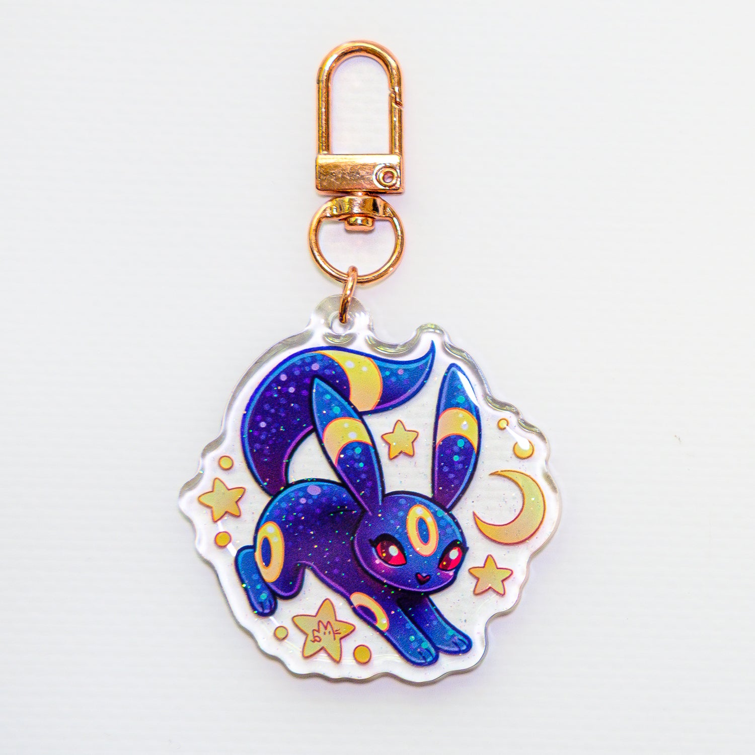 Acrylic, two-sided keychain with metal rig. Covered with glitteric, synthetic resin.