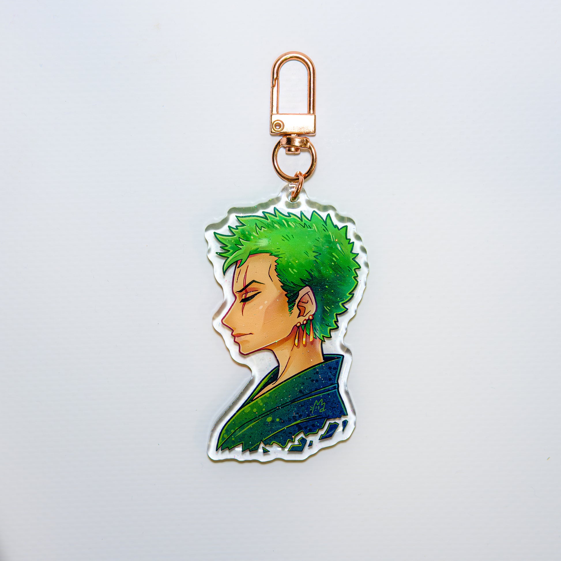 Carry the strength of the future Greatest Swordsman with this premium, double-sided Roronoa Zoro acrylic charm.